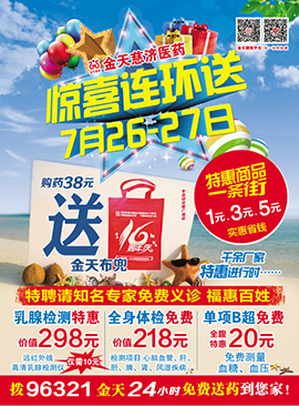 夏凉礼四:金天义诊,给你健康!单项B超、航天量子免费测。全身B超特惠20元!价值298元乳腺检测特惠10元: