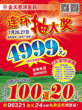 夏凉礼一:家门口抽大奖,幸运早知道,7月26、27日连续两天金天广场店抽大奖,共送出现金等百项好礼。
